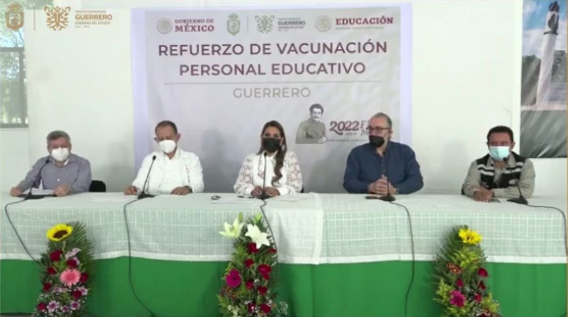A su vez, Ramón Cárdenas Villarreal, comisionado de la Secretaría de Educación Pública para el reforzamiento de la vacuna al sector educativo en Guerrero, dijo que este proceso se llevará a cabo de manera coordinada entre el gobierno del estado a través de las secretarías de Educación y Salud, así como el Ejército Mexicano, la Marina y la Guardia Nacional para iniciar este proceso el lunes 17 de enero, detallando que hay vacunas suficientes para cumplir con la meta trazada.