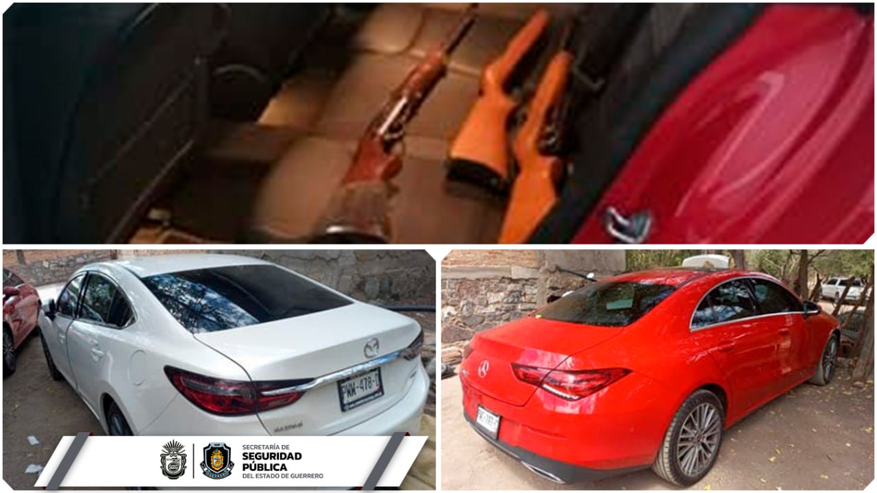 En un primer evento, los agentes realizaban recorridos de proximidad social en la localidad de Valerio Trujano de dicho municipio, donde aseguraron un automóvil marca Mazda, tipo Mazda 6, modelo 2020, así como un vehículo marca Mercedes Benz, tipo clase CLA 200, modelo 2020.