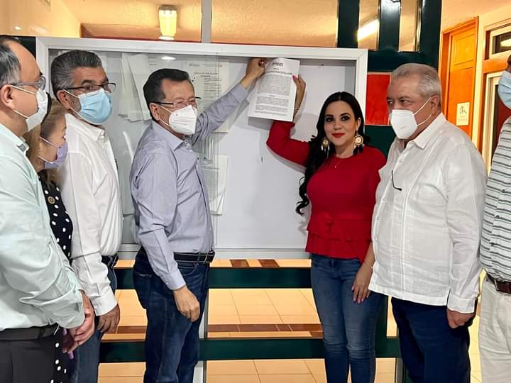 Acompañado de integrantes de la Comisión Estatal de Procesos Internos, de la estructura del Comité Directivo Estatal, y del delegado del CEN, José Olvera, publicó la convocatoria emitida por la dirigencia del PRI nacional.