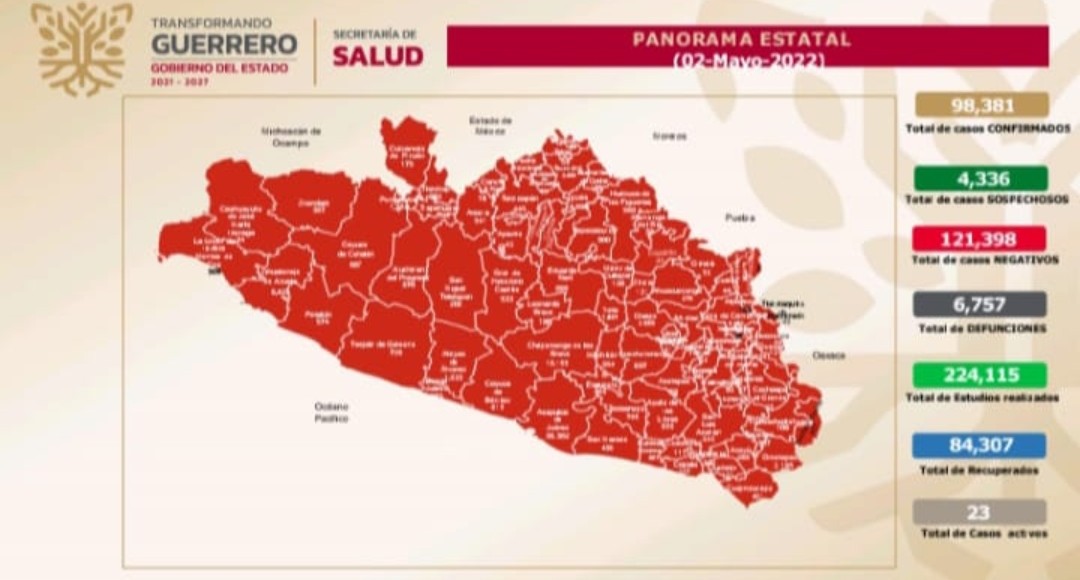 Al 01 de mayo, el Estado de Guerrero concentra 23 casos activos, en seis municipios: