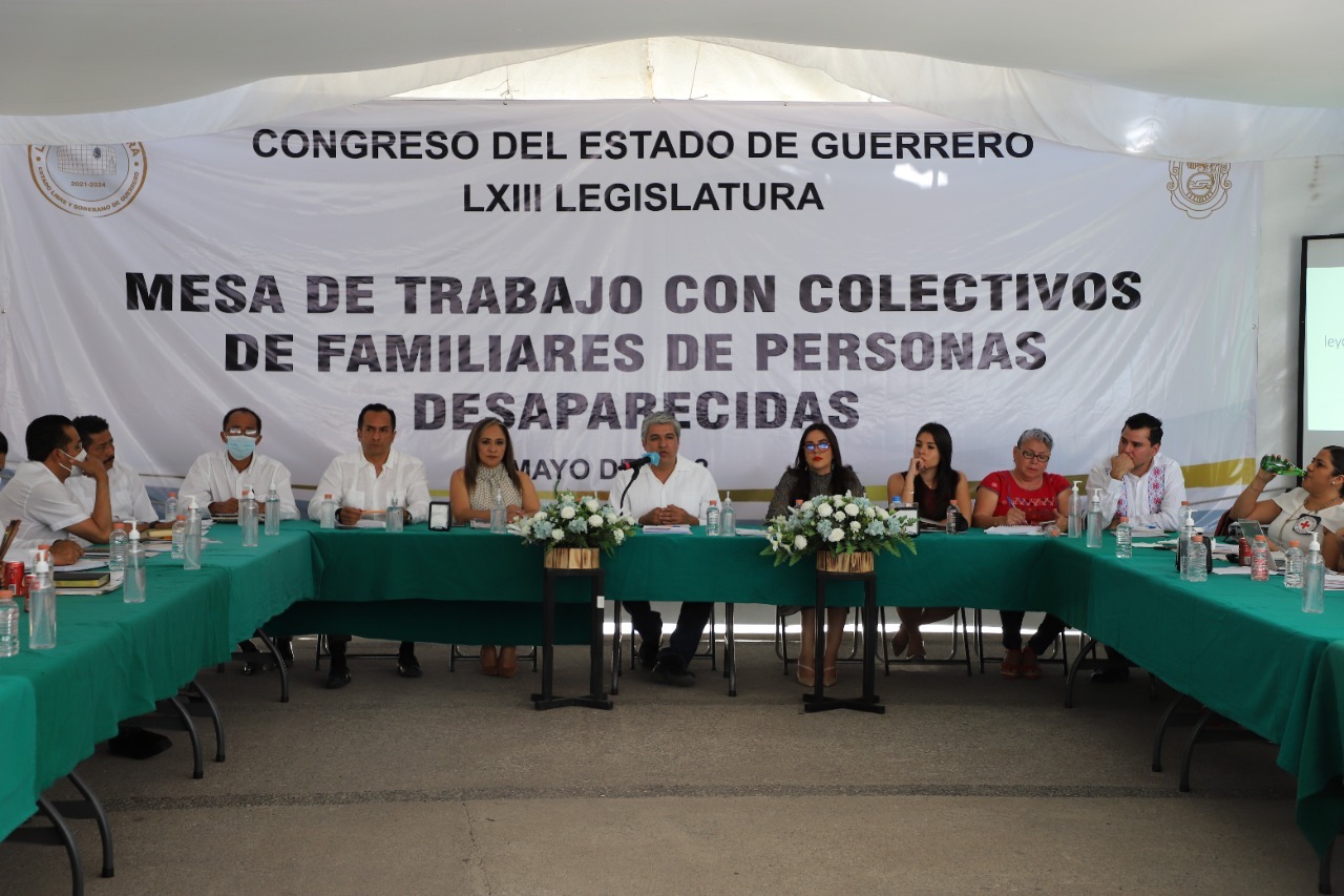 Chilpancingo, Gro., 08 de mayo de 2022.– Diputadas y diputados de la LXIII Legislatura, junto a autoridades del Gobierno del Estado, Fiscalía General del Estado, Comisión Estatal de los Derechos Humanos y Cruz Roja Internacional, sostuvieron una reunión de trabajo con colectivos de familiares de personas desaparecidas, a quienes se presentó el anteproyecto de Ley en Materia de Desaparición de Personas del Estado de Guerrero.