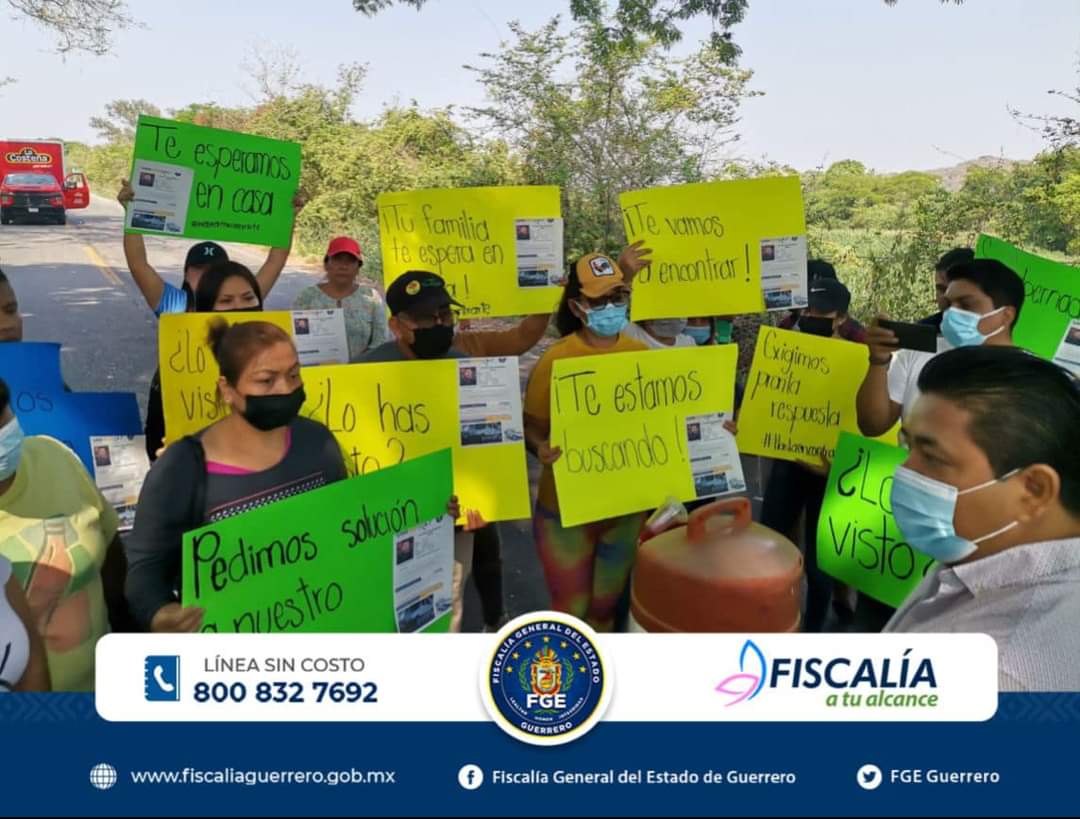 Chilpancingo, Gro. a 19 de mayo del 2022.- La Fiscalía General del Estado a través del Fiscal Especializado en Desaparición Forzada y Búsqueda de Personas Desaparecidas atendió las causas del bloqueo que se registro en la carretera federal Chilpancingo–Acapulco, a la altura del tramo carretero Rincón de la Vía–Ocotito, habiendo hecho del conocimiento a los familiares directos de la víctima, el avance de la investigación y las acciones a ejecutar para la búsqueda y localización de Francisco «N», de ocupación taxista.