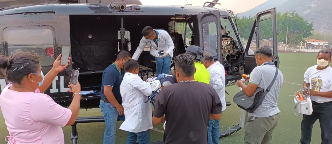 El traslado fue coordinado por el Centro Regulador de Urgencias Médicas (CRUM) de la Secretaría de Salud del Estado de Guerrero, en una unidad aeromóvil de la Secretaría de Seguridad Pública del Estado de Guerrero.