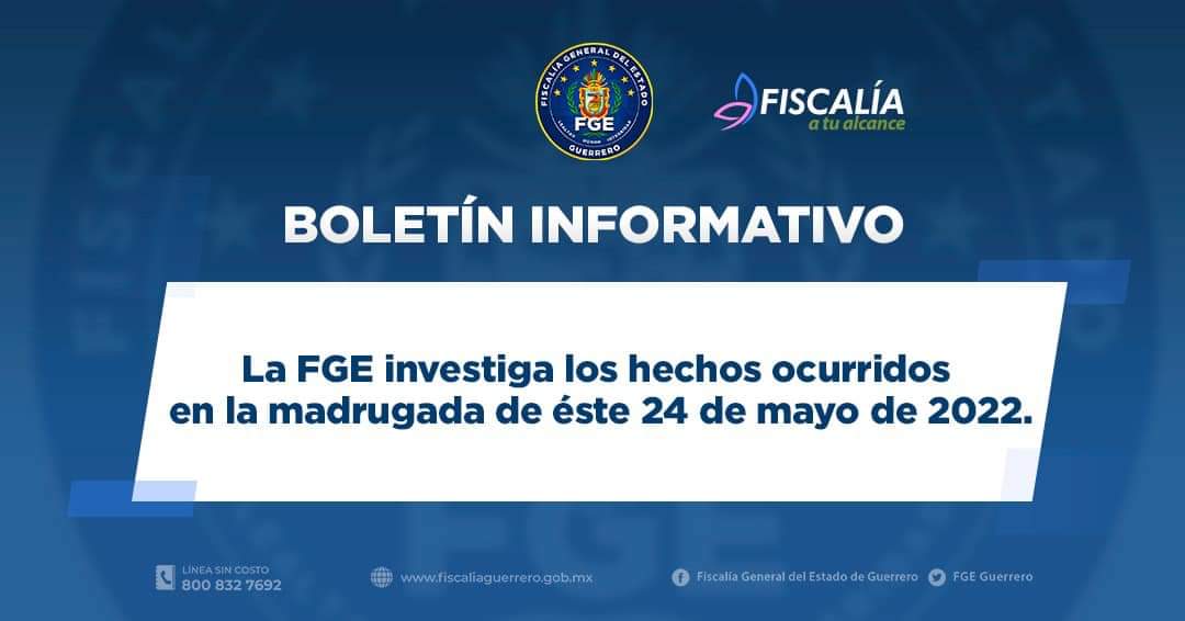 La Fiscalía General del Estado (FGE) informó que se inició la carpeta de investigación correspondiente, con motivo de los hechos ocurridos en la madrugada de éste martes 24 de mayo en Chilpancingo, Gro.
