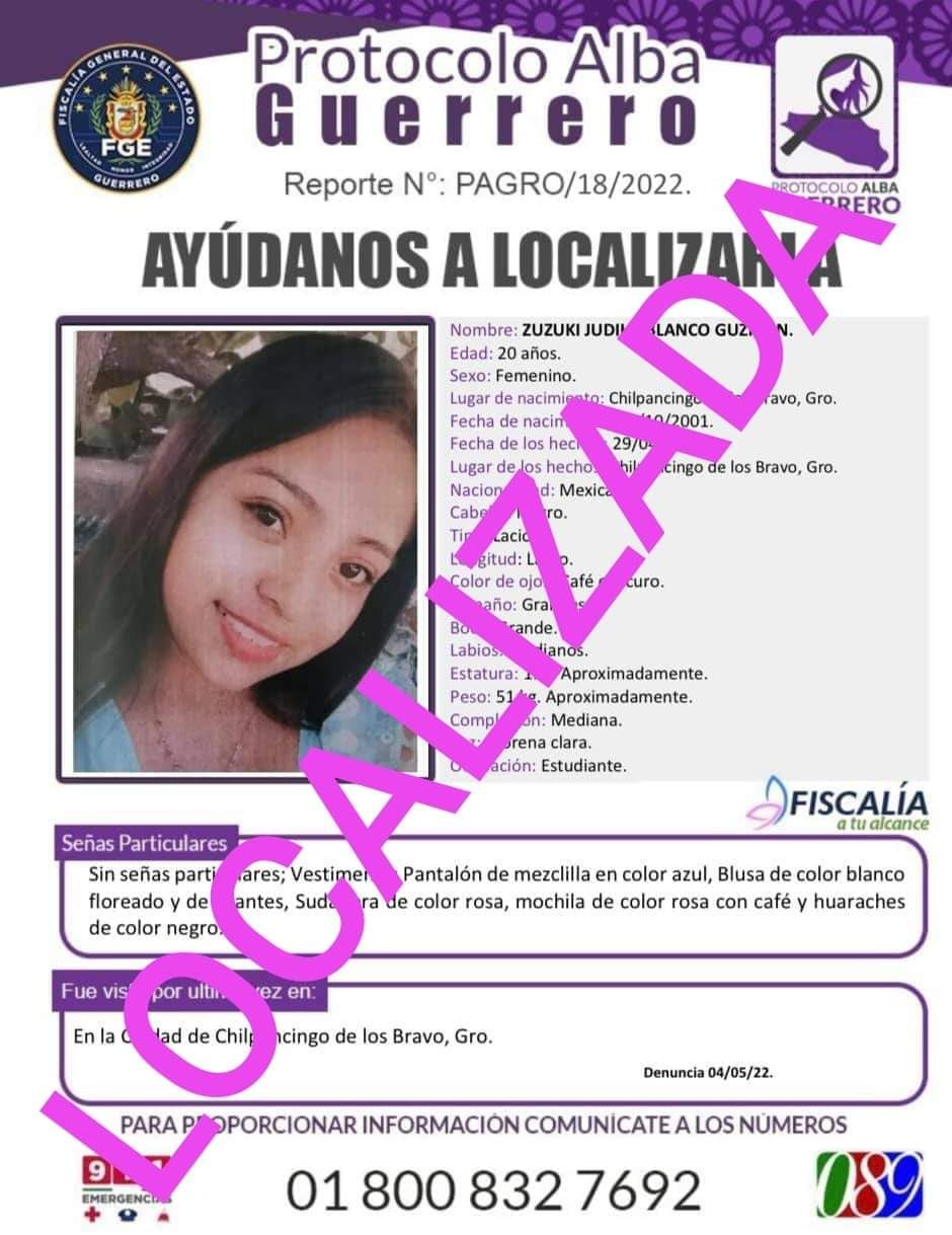 Zuzuki se fue de su casa de manera voluntaria; la localizan con vida en Chilpancingo: FGE