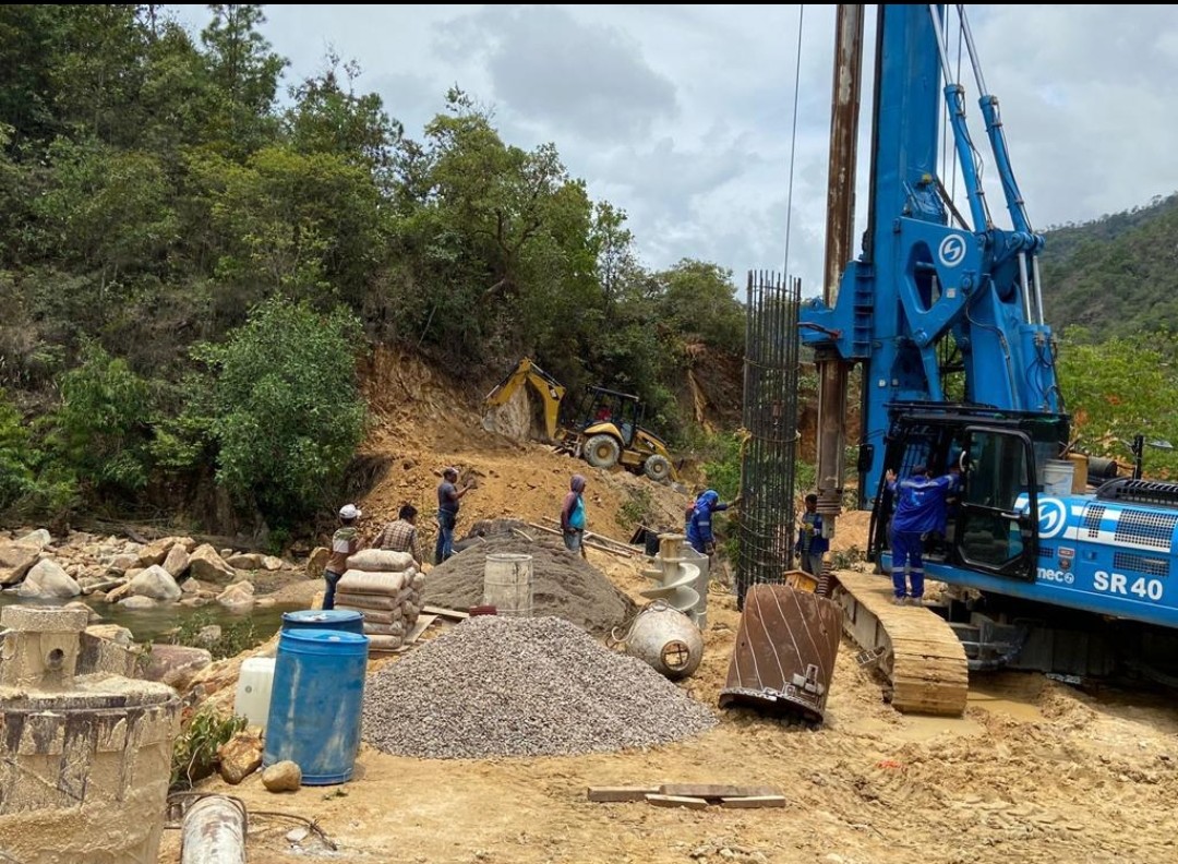 Chilpancingo, Gro., 27 de junio del 2022.- Como parte de las obras y acciones que lleva a cabo el gobierno del estado para mejorar las condiciones de vida de los habitantes de la región de la Montaña, con una inversión de 14 millones 567 mil 337 pesos, se construye el puente vehicular Río Víbora en el municipio de Cochoapa el Grande.