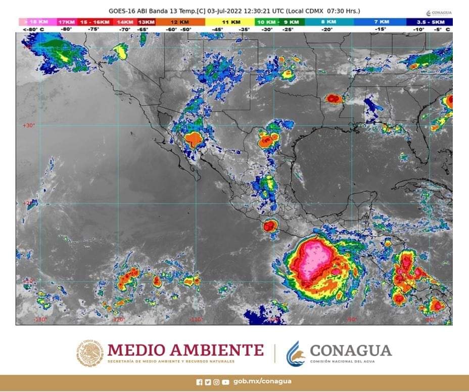 En su reporte, el Servicio Meteorológico Nacional (SMN), indica que la tormenta tropical «Bonnie», ubicada en el Océano Pacífico, se localiza a 335 kilómetros al sur de Tapachula Chiapas; se prevé que el fenómeno pueda intensificarse a huracán categoría 1 en las próximas horas con vientos de 120 a 153 kilómetros con un desplazamiento paralelo a las costas de Oaxaca y Chiapas y este lunes 4 podría alcanzar la categoría 2.