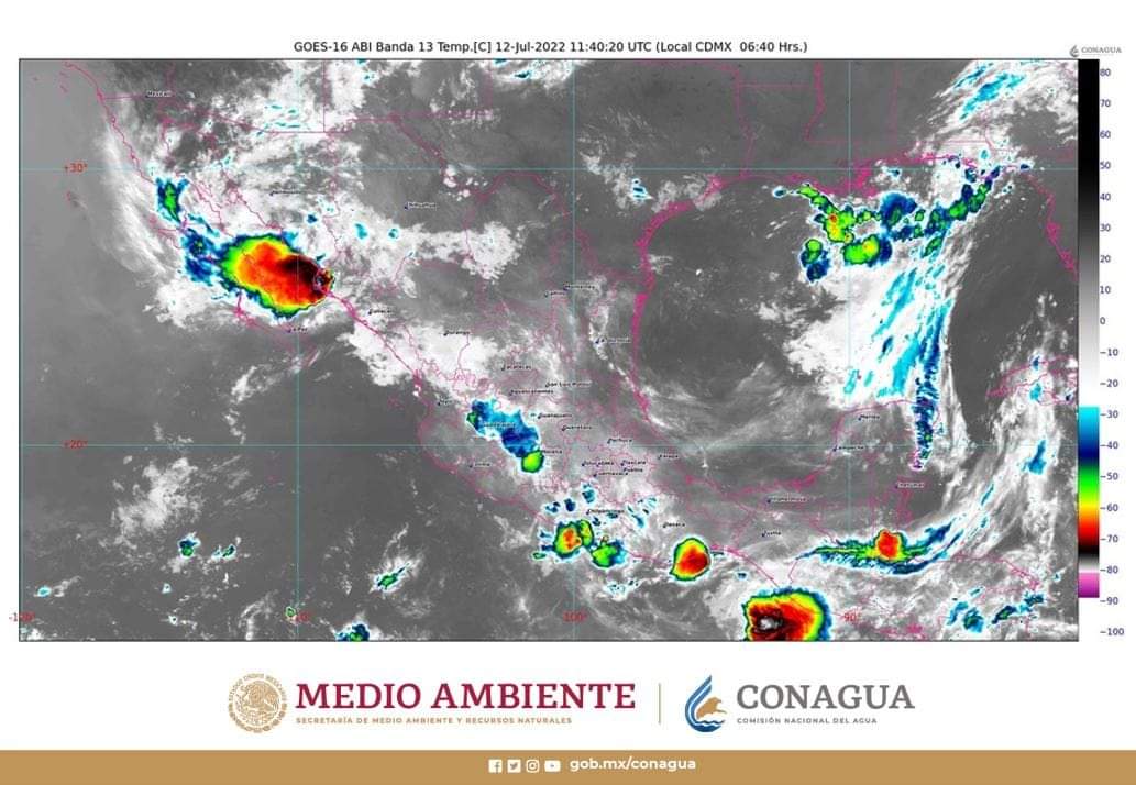 Acapulco, Gro., 12 de julio de 2022.- El monzón mexicano, que se mantendrá sobre el noroeste de México, la Onda Tropical Número 11, la cual recorrerá el sureste del país e interaccionará con una zona de baja presión con potencial ciclónico frente a la costa occidental de Costa Rica y por un canal de baja presión extendido sobre el interior del territorio nacional, en combinación con la entrada de humedad de ambos Océanos e inestabilidad en niveles altos de la atmósfera, se prevé persistan las lluvias muy fuertes en Guerrero y otros estados las próximas horas.