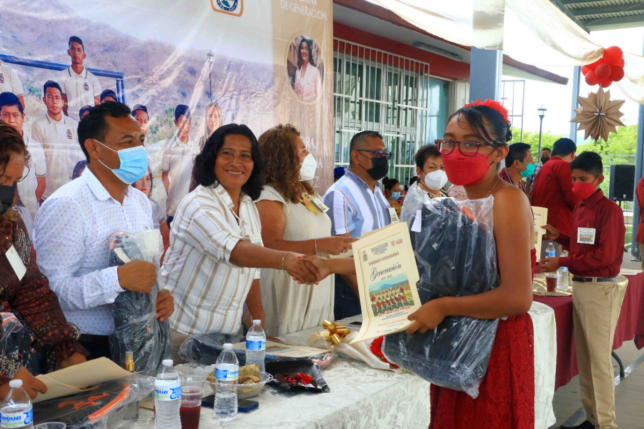 El director de la telesecundaria, Jonathan Miranda Aburto, agradeció a la alcaldesa y a la titular de Bienestar y Desarrollo Comunitario por ser parte del desarrollo de la institución, por brindar herramientas tecnológicas para que los alumnos pudieran recibir sus clases desde casa con la llegada de la pandemia por COVID-19.