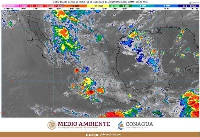 También señala que canales de baja presión sobre el norte, occidente, centro, oriente y sureste del territorio nacional, en combinación con el ingreso de humedad proveniente de ambos océanos e inestabilidad en la atmósfera superior, ocasionarán chubascos vespertinos y lluvias puntuales fuertes sobre las regiones mencionadas.
