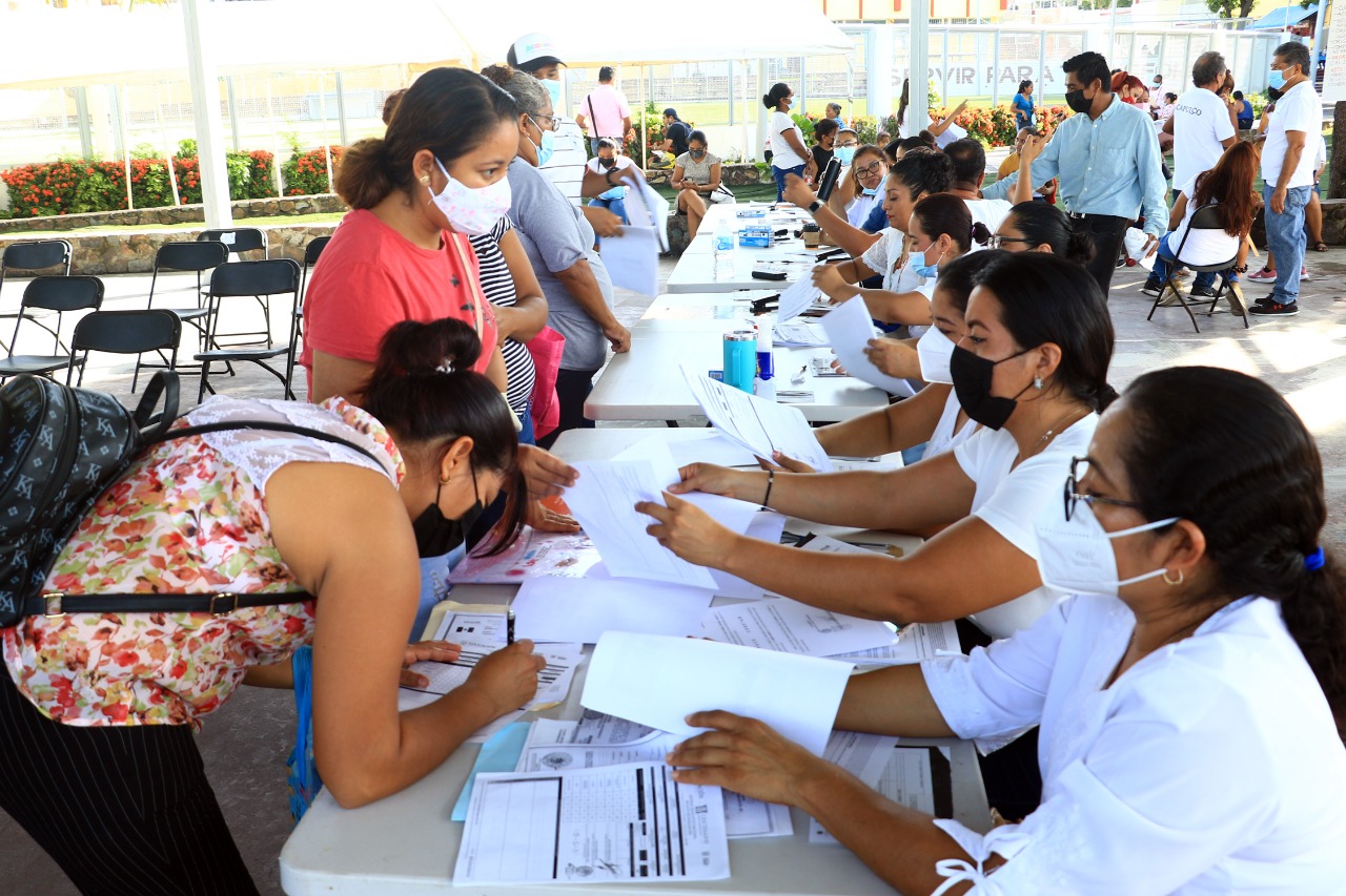 Al interior de la Unidad Deportiva Vicente Suárez, desde temprana hora, madres y padres de familia se dieron cita para obtener una ficha y entregar la documentación, a fin de que sus hijos o hijas que cursan de tercero a sexto año de primaria, puedan ser candidatos a dicho beneficio.