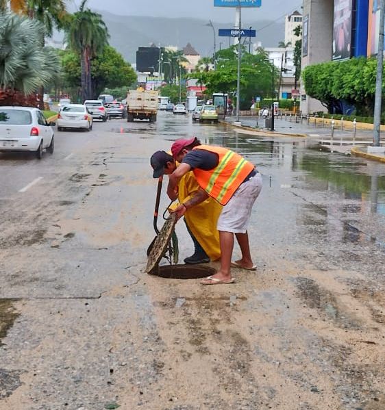 Asimismo, desde el pasado sábado personal de saneamiento han supervisado los 18 canales pluviales que desembocan a la bahía de Acapulco para confirmar que, no existen escurrimientos de aguas negras, y solo se han presentado salida de aguas pluviales que bajan de las partes altas.