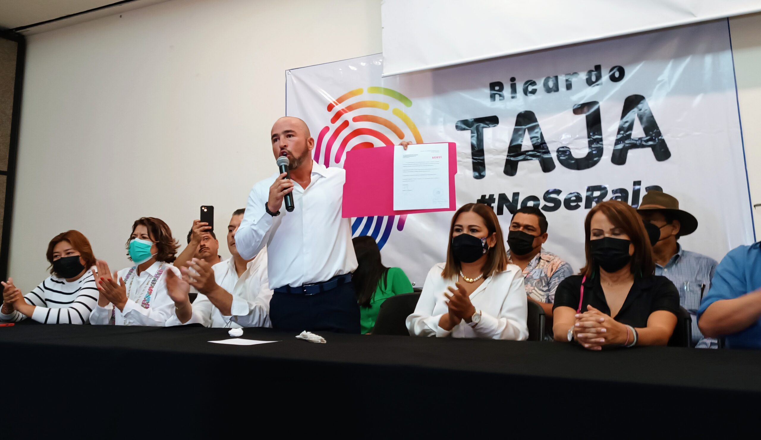 En este evento, Ricardo Taja estuvo acompañado de decenas de sus seguidores, así como de algunos funcionarios y liderazgos como Samuel Reséndiz Peñaloza, Julio César Bello Vargas, Erik Catalán Rendón, Rosaura Rodríguez Carrillo, Sofía Corona, July Peláez, Ricarda Robles Urioste, Antonio Zamora y René Morales Barrientos.
