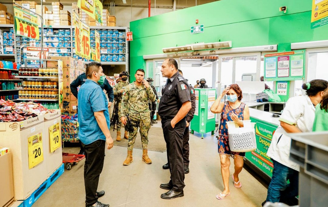 El subsecretario de Prevención y Operación Policial, Irvin de Jesús Jiménez Sánchez vigila y coordina el despliegue operativo que se instruyó desde el pasado lunes, inmediatamente después de conocerse de los hechos de violencia; este trabajo se realiza de manera cercana con el Director de Seguridad de Zihuatanejo Carlos Sedas Taracera con quien se realizó un recorrido por diversas tiendas de autoservicio para entrevistarse con los gerentes y directivos comerciales.