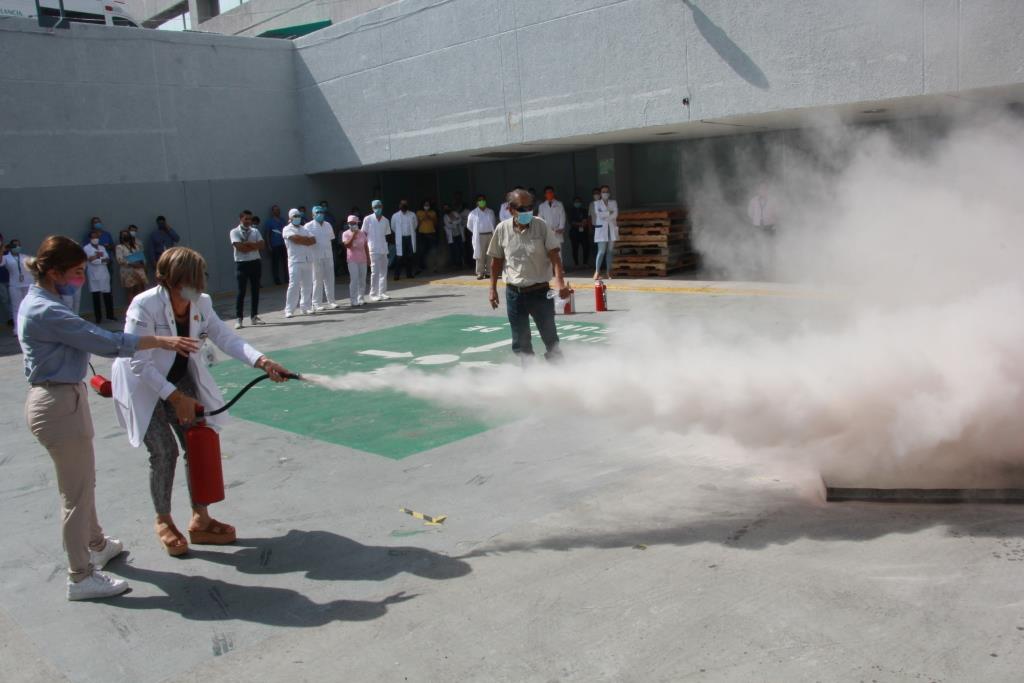 Este taller y las prácticas se realizaron en instalaciones del hospital donde las y los trabajadores reforzaron los conocimientos adquiridos y pusieron en práctica cómo utilizar correctamente los diferentes tipos de extintores con los que se cuenta en el Seguro Social.