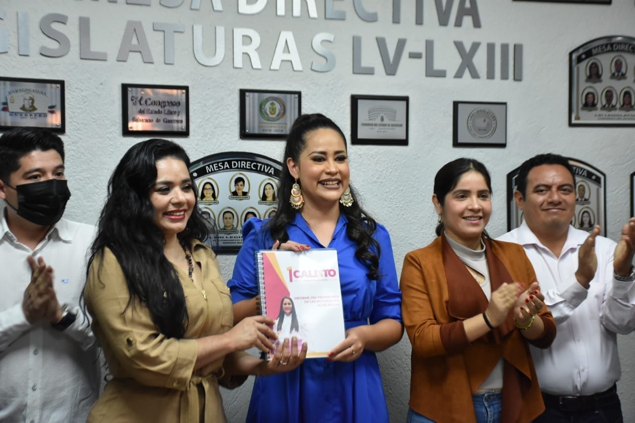 Chilpancingo Gro; a 27 de septiembre del 2022. La diputada más joven en la historia del Estado de Guerrero, Gloria Citlali Calixto Jiménez, rindió su Primer Informe Anual de Actividades Legislativas como integrante de la LXIII Legislatura del Congreso del Estado de Guerrero, donde resalta que su informe se divide en dos funciones: legislar a favor del pueblo guerrerense y ser gestora para las vecinas y vecinos del Distrito 04.