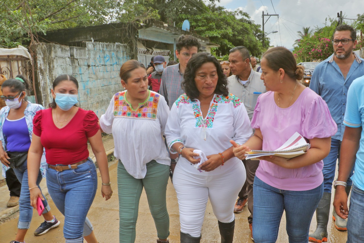 Abelina López expresó a los pobladores y comisario municipal de La Venta, Juan Luis Delgado Fierro, que cuentan con el Gobierno Municipal y que trabajarán coordinadamente para ayudar a los damnificados que perdieron sus viviendas.