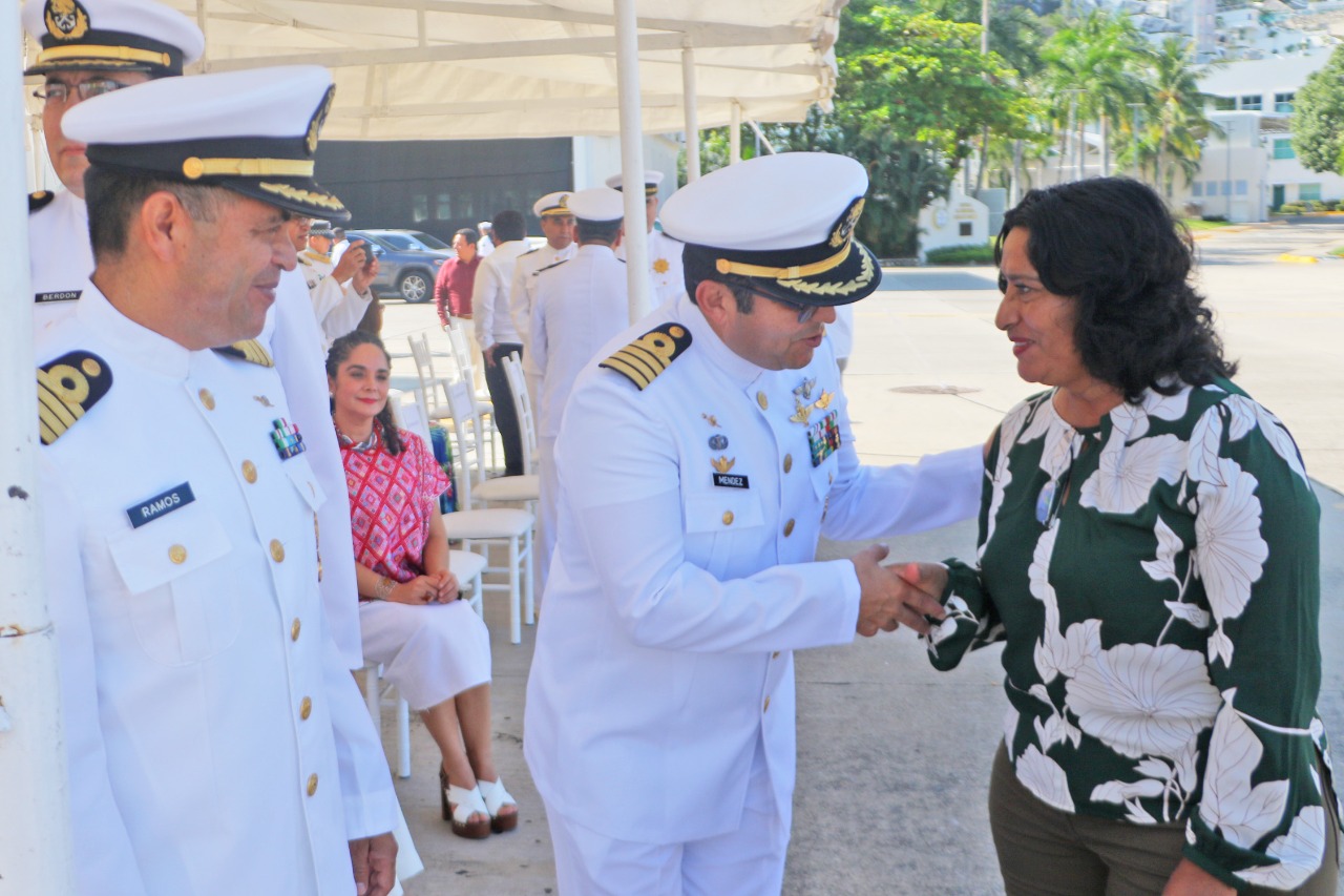 Acapulco, Gro., 23 de noviembre de 2022.– La presidenta municipal, Abelina López Rodríguez, asistió a la ceremonia conmemorativa al 197 aniversario de la Armada de México junto a la gobernadora del estado, Evelyn Salgado Pineda, y el comandante de la Décimo Segunda Región Naval, Julio César Pescina Ávila.