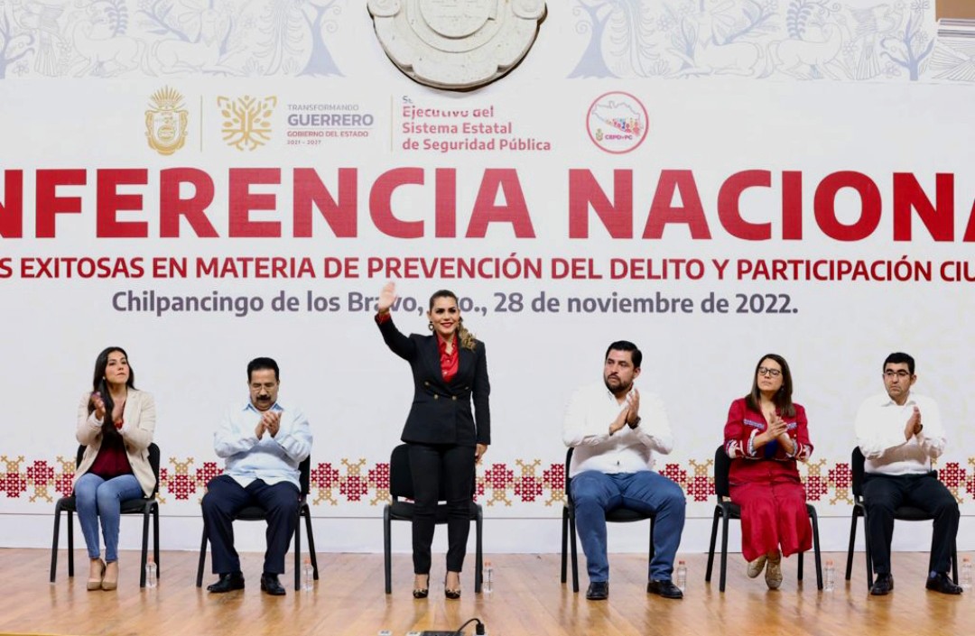 Chilpancingo Gro., 28 de noviembre del 2022. – «Vamos avanzando en la ruta de paz para Guerrero con una visión integral de bienestar, fomentando la participación ciudadana con un trabajo de territorio y no de escritorio», afirmó la gobernadora Evelyn Salgado Pineda al inaugurar la Conferencia Nacional: «Prácticas exitosas en materia de prevención del delito y participación ciudadana», con el objetivo de fortalecer el trabajo seguridad para construir la paz y lograr la igualdad entre mujeres y hombres con respeto y armonía en todos y cada uno de los espacios en el estado.