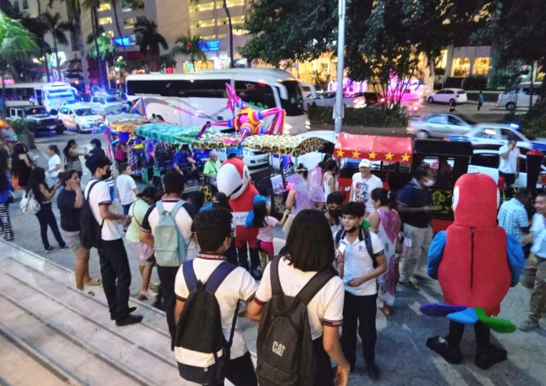 Una fiesta colorida y de diversión fue la que vivieron niños, niñas, jóvenes y adultos, acompañados por las botargas Papa y Gayo, recorriendo la principal avenida del puerto, mientras los comerciantes obsequiaban pases y cortesías de lo que ofrecen en el parque Papagayo.