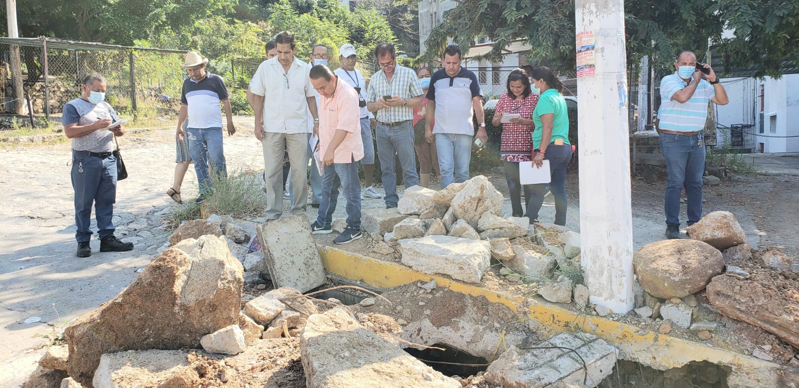 Acapulco, Gro, a 09 de diciembre del 2022. Funcionarios de la Comisión de Agua Potable y Alcantarillado del Municipio de Acapulco (Capama), encabezados por el encargado de despacho de la dirección general, Héctor Alejandro Juárez Amador, realizaron un recorrido con vecinos e integrantes del Comité de Propietarios de la Unidad Habitacional Vicente Guerrero (FOVISSSTE) para supervisar diversos problemas detectados en la zona.