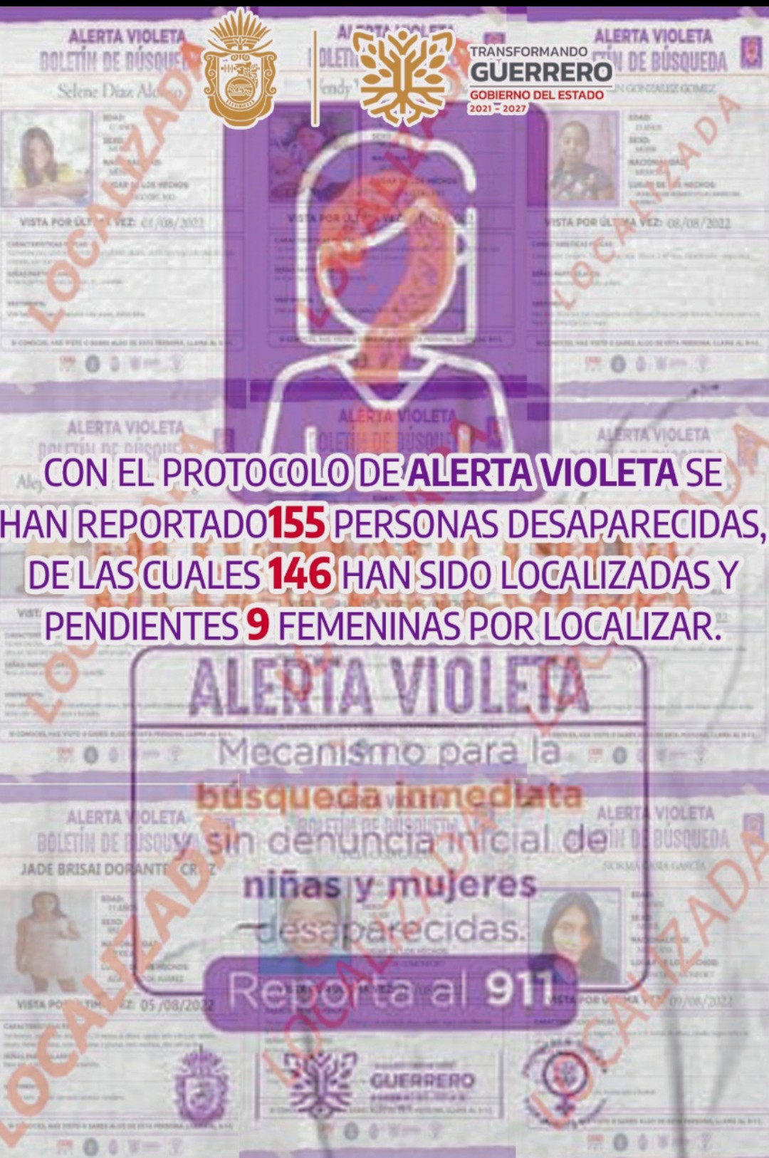 Este programa refleja la política de combate frontal a la violencia en contra de las mujeres, que impulsa el gobierno de Guerrero ya que como nunca antes se atiende esta problemática social, lo que ha permitido que desde el 18 de julio al 14 de diciembre, se hayan localizado a 146 mujeres y niños desparecidos, a través de la emisión de 141 alertas, quedando sólo por ubicar a nueve mujeres, de las cuales continúa su búsqueda.
