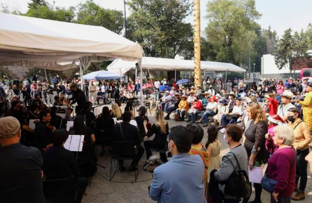 De manera grandiosa, la Filarmónica finalizó su presentación en el Complejo Cultural “Los Pinos” interpretando en un arreglo para Coro y Orquesta, el “Huapango” de José Pablo Moncayo que, por primera vez en la historia de la música en México se escuchó la letra cantada de los tres Sones de la Huasteca Veracruzana.