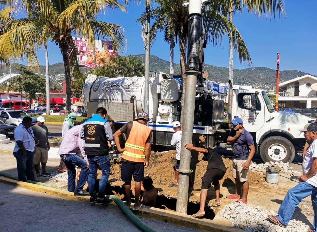 El Director General de la CAPASEG, Facundo Gastélum Félix, informó que la gobernadora, Evelyn Salgado Pineda, ha instruido apoyar con mayor énfasis en estas fechas tan importantes para el puerto, por lo que se está realizando una serie de acciones inmediatas en apoyo al Municipio y a la población acapulqueña, trabajando en coordinación con el Organismo municipal, CAPAMA, en un operativo con el equipo hidráulico especializado tipo váctor, que está atendiendo varios puntos con el desazolve y mantenimiento en el sistema de drenaje, que presenta taponamientos y/o fugas