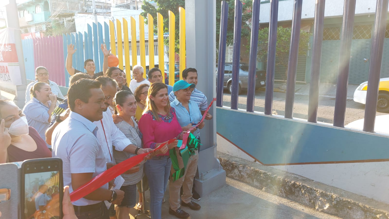 La diputada Julieta Fernández Márquez cortó el listón de la entrega del arco-techo de la cancha de Basketball de la calle Durango en la colonia Progreso de Acapulco.