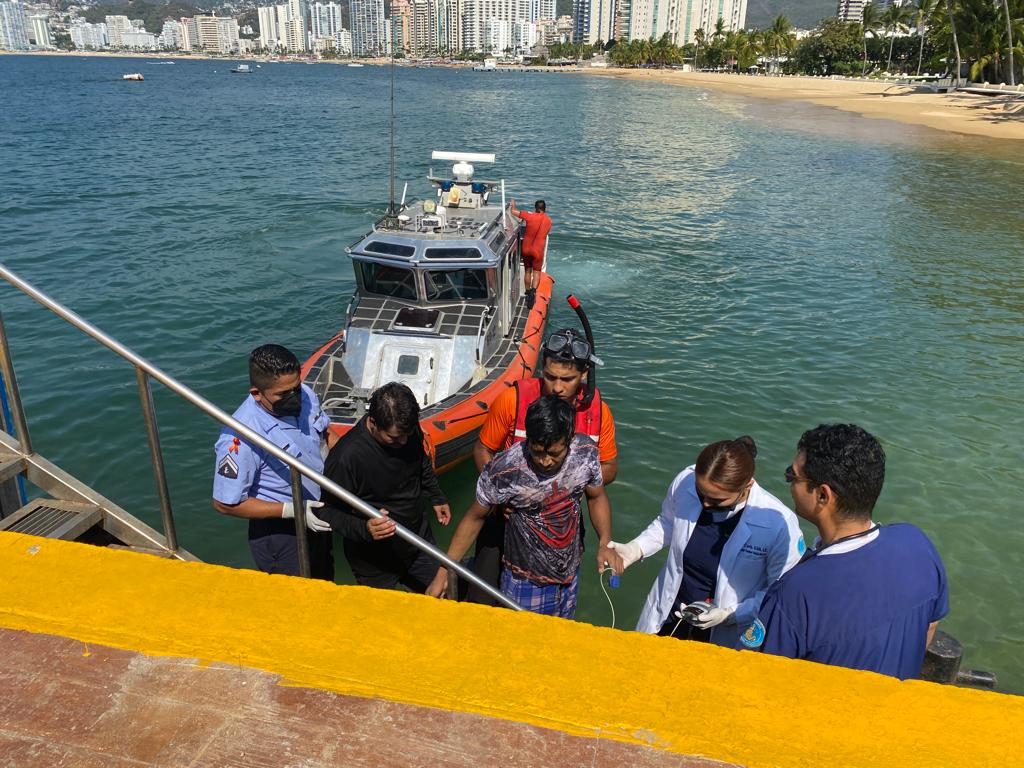 Al llegar al lugar, personal Naval rescató a dos personas del sexo masculino de 38 y 20 años de edad respectivamente, quienes tenían problemas para salir del mar; trasladándolos posteriormente al muelle de la Décima Segunda Región Naval, donde los esperaba una ambulancia con elementos de Sanidad Naval para ser trasladados a las instalaciones del Hospital Naval de Acapulco, para recibir atención médica especializada.