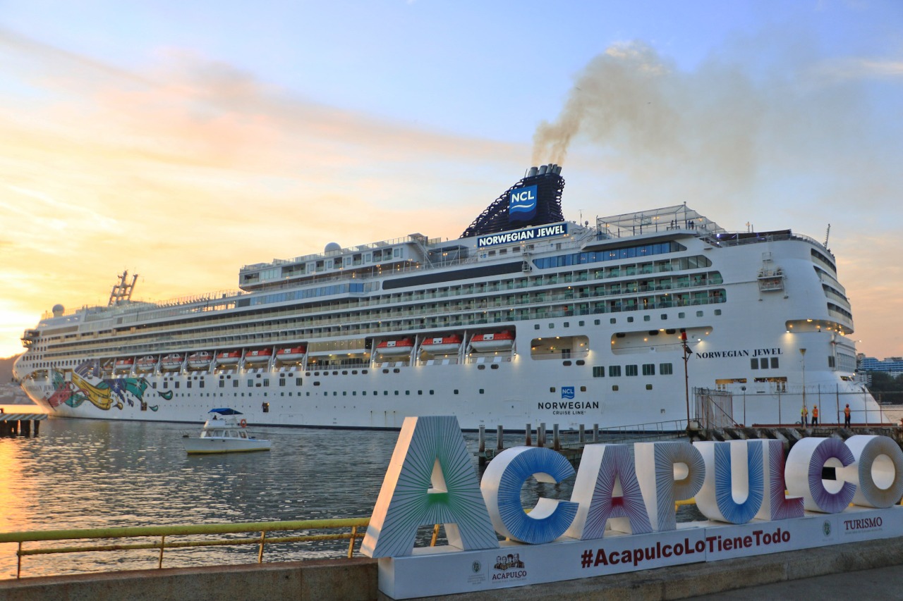 Acapulco, Gro., 19 de enero de 2023.– El puerto de Acapulco recibió este jueves al Norwegian Jewel, el cuarto crucero del año, por lo que el flujo de visitantes por esta vía continúa aumentando, gracias al trabajo del Gobierno Municipal encabezado por la alcaldesa, Abelina López Rodríguez.