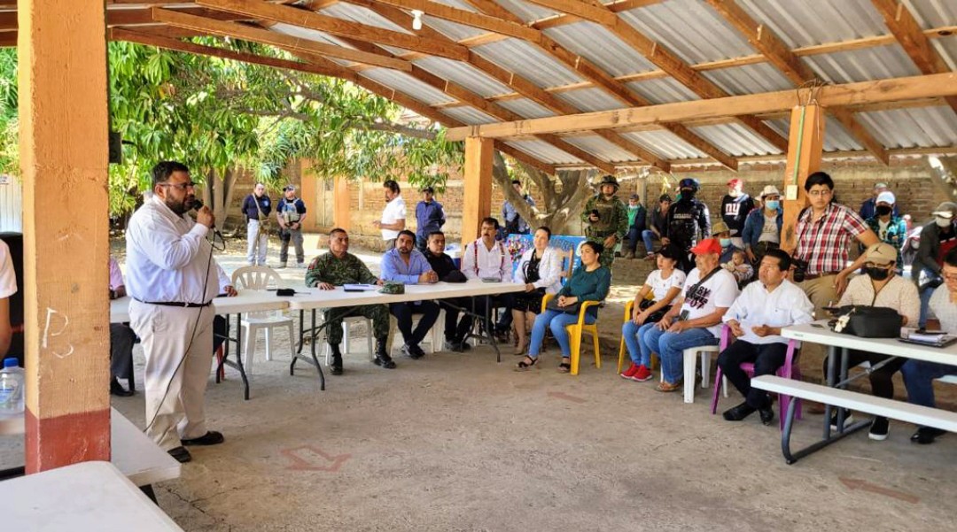En la escuela primaria Gral. Lázaro Cárdenas, con la representación de la gobernadora Evelyn Salgado Pineda, el Director General de Gobernación, Francisco Rodríguez Cisneros, acompañado por representantes de la Comisión de Derechos Humanos del estado y de la Secretaría de la Defensa Nacional, Guardia Nacional y Fiscalía General del Estado, se reunió con más de 120 habitantes y comisarios de las comunidades de Santa Rosa de Lima, El Parotal, Mameycito, Corrales, Durazno, Arroyo Verde y El Porvenir.
