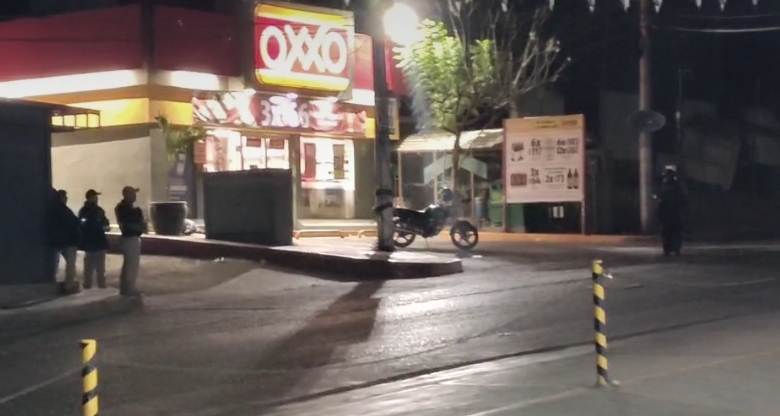 Al llegar la Policía Estatal justo a un costado del Oxxo observó el cuerpo de un hombre que vestía sudadera gris, pantalón de mezclilla que presentaba al menos tres impactos calibre 45 y que al momento de ser atacado viajaba en una motocicleta color negro marca Italika.