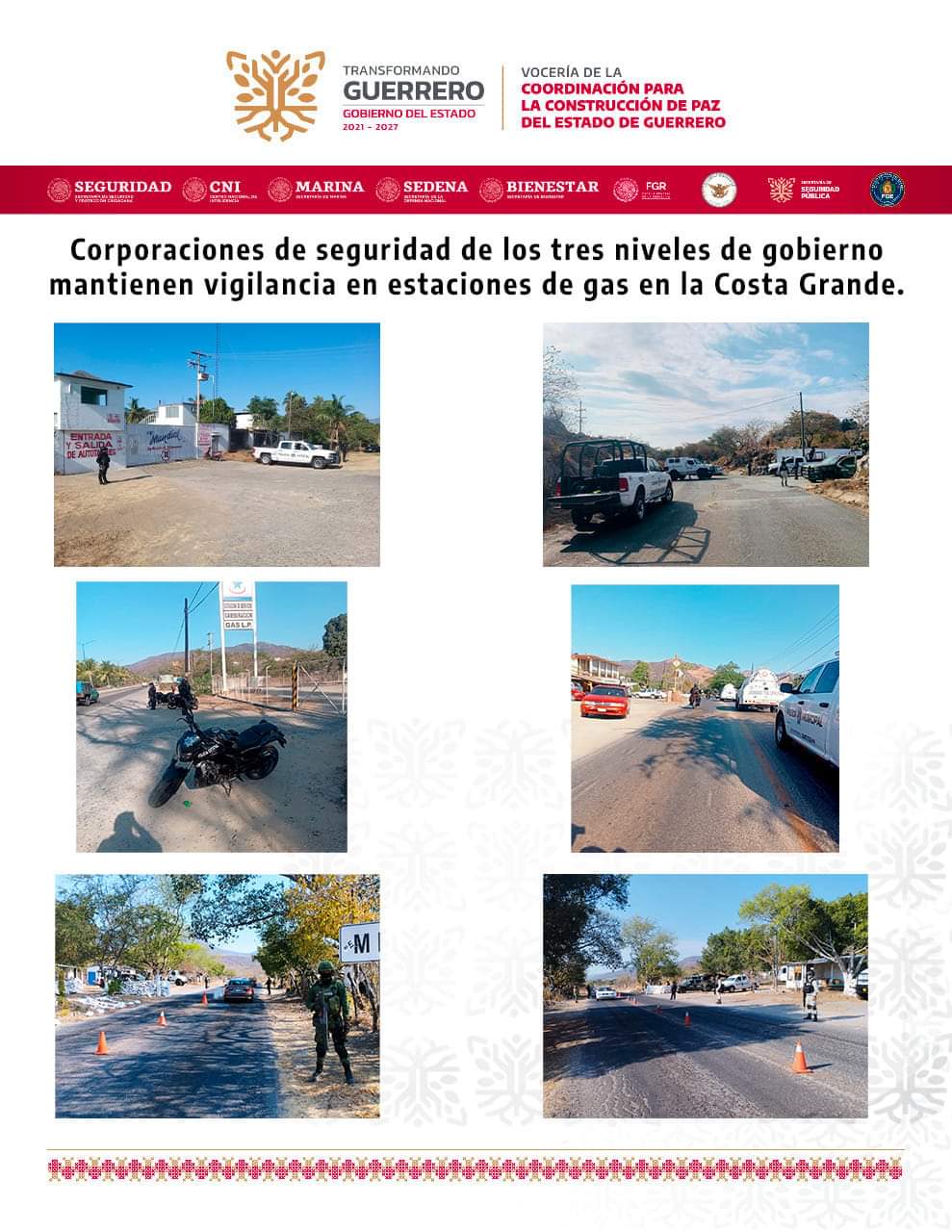 Debido a lo anterior, personal de la Policía Estatal en coordinación con Guardia Nacional, Secretaría de Marina, Ejército Mexicano y Policía Municipal, implementan operativos de seguridad y vigilancia de manera permanente en las instalaciones.