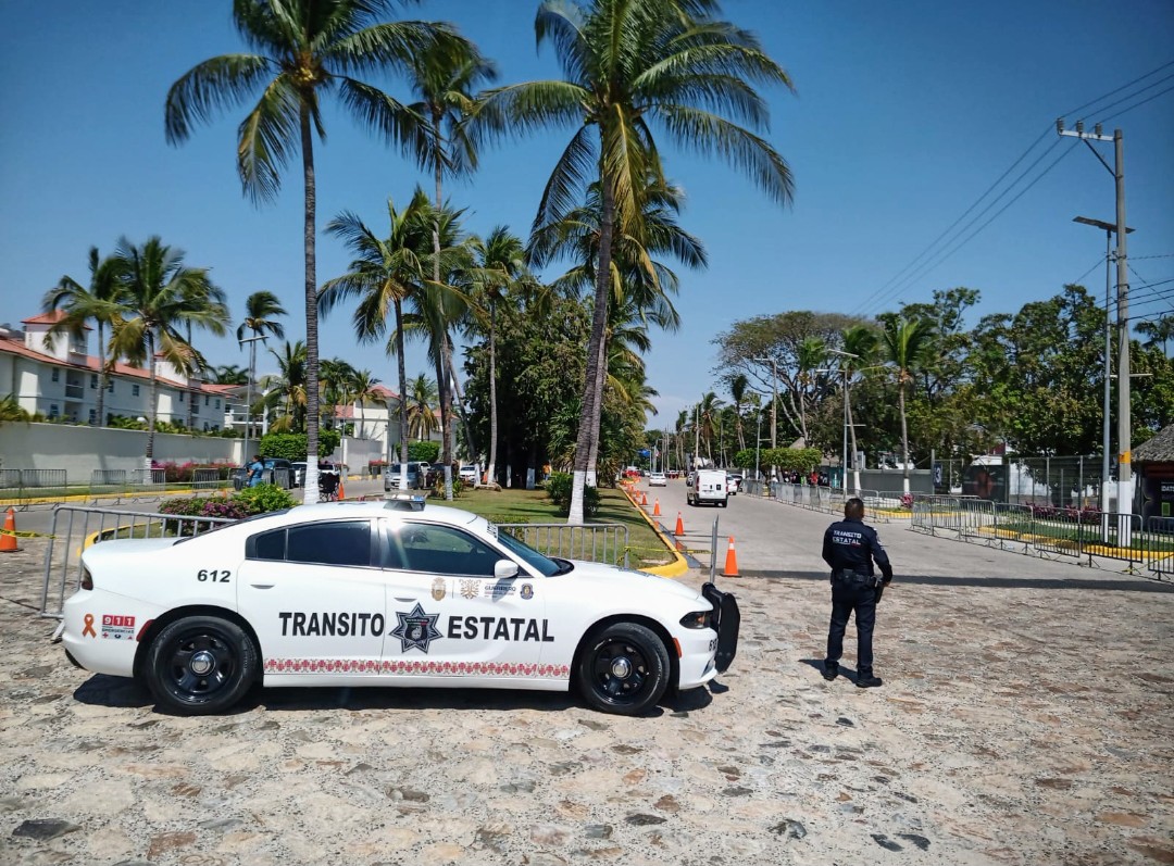 Resguarda el personal de la Policía Estatal de la Secretaría de Seguridad Pública Guerrero los distintos puntos y zonas donde se desarrolla la 30 edición del Abierto Mexicano de Tenis en el municipio de Acapulco.