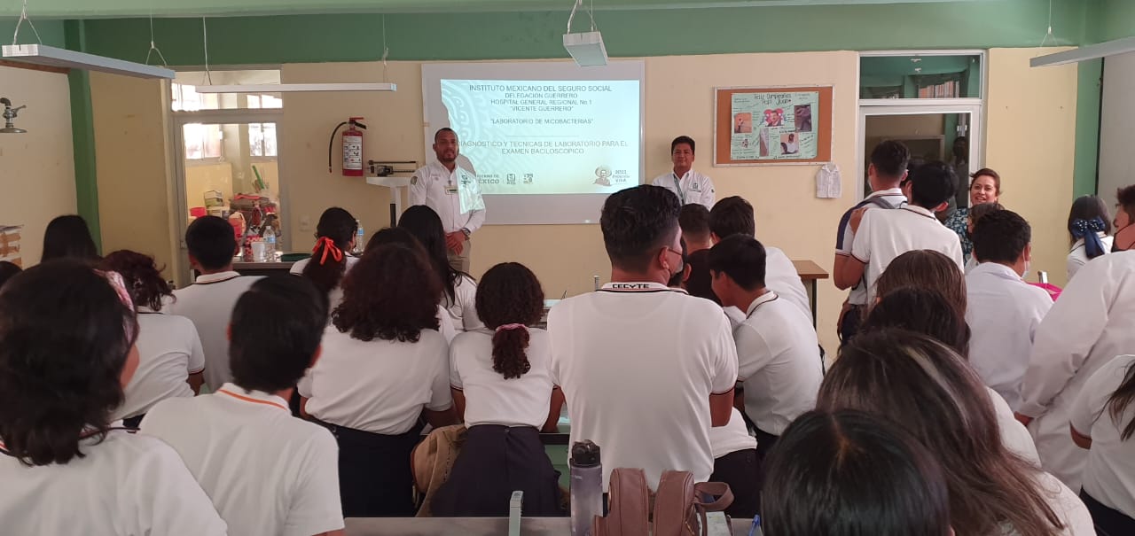 Personal del servicio de Laboratorio del Hospital General Regional (HGR) No. 1 “Vicente Guerrero” impartió este viernes un curso-taller sobre tuberculosis a estudiantes de la carrera técnica de laboratorista, del Colegio de Estudios Científicos y Tecnológicos del Estado plantel (CeCyTec) No. 1, en Acapulco.