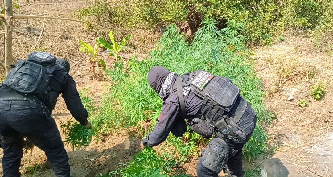 En acciones de seguridad y despliegue terrestre de la Policía Estatal en el municipio de San Luis Acatlán, se detectó y aseguró un plantío con características propias de la marihuana.
