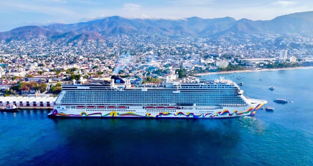 Esta mañana arribó a la terminal marítima de Acapulco el vigésimo crucero de la presente temporada, el Norwegian Encore, uno de los barcos más recientes de la empresa Norwegian Cruise Line, con 3,844 pasajeros y 1,630 tripulantes.