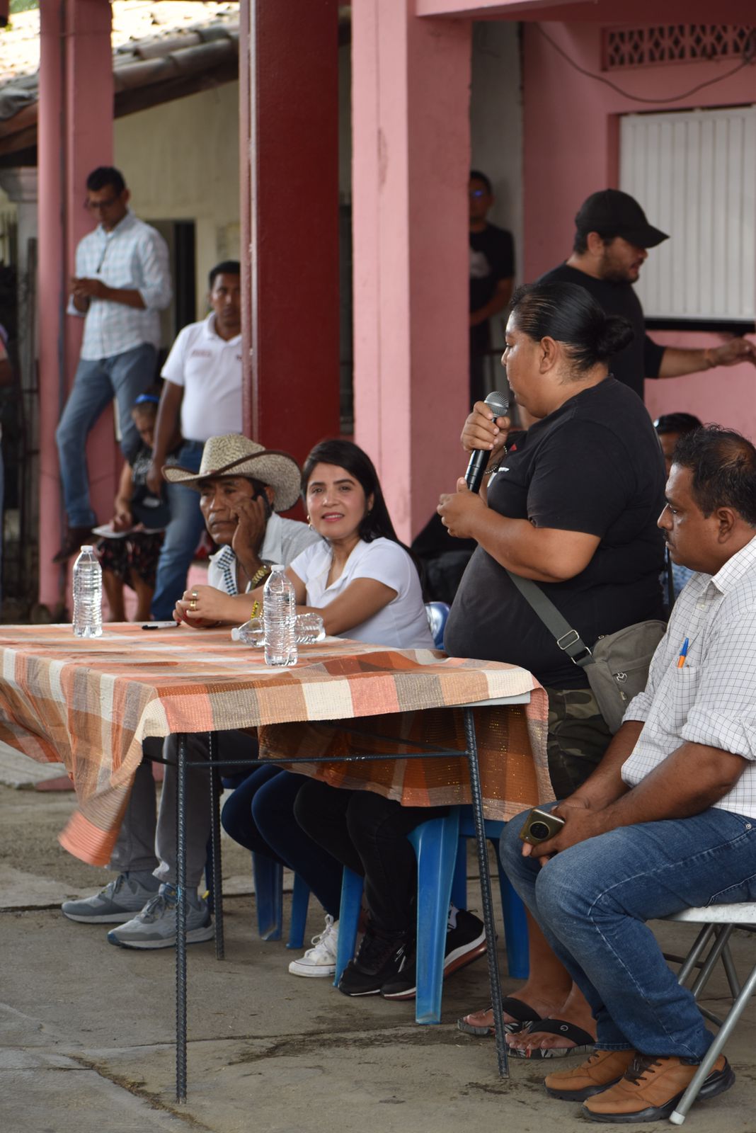 Esto al hacer uso de la palabra la comisaria municipal del poblado, Mercedes Martínez Quiñones, quien es además presidenta del Consejo Consultivo de Comisarios Municipales del Puerto de Acapulco, y fueron secundadas por el presidente del Comisariado Ejidal de Dos Arroyos, Fidel Jiménez Nava, quien la acompañaba.
