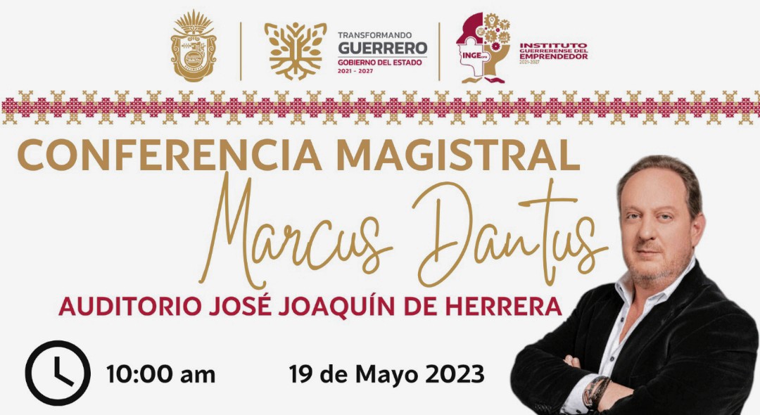 Chilpancingo, Gro., 15 de mayo de 2023.- El Gobierno del Estado, a través del Instituto Guerrerense del Emprendedor (INGE) llevarán a cabo el 19 de mayo la conferencia magistral con Marcus Dantus, reconocido emprendedor e inversionista mexicano, en el Auditorio José Joaquín de Herrera, del Palacio de Gobierno.