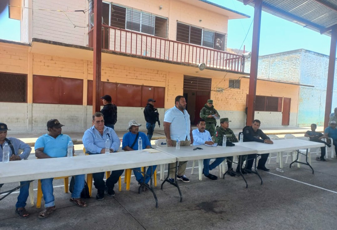 Nuevo Caracol, Mpio. De Heliodoro Castillo., 26 de mayo de 2023.- Funcionarios de los tres niveles de gobierno acudieron a este poblado a reunirse con los habitantes para ofrecerles garantías de seguridad y el pronto restablecimiento de la normalidad en sus comunidades, luego de que pobladores denunciaran agresiones por parte de grupos desconocidos que generan violencia en la zona.