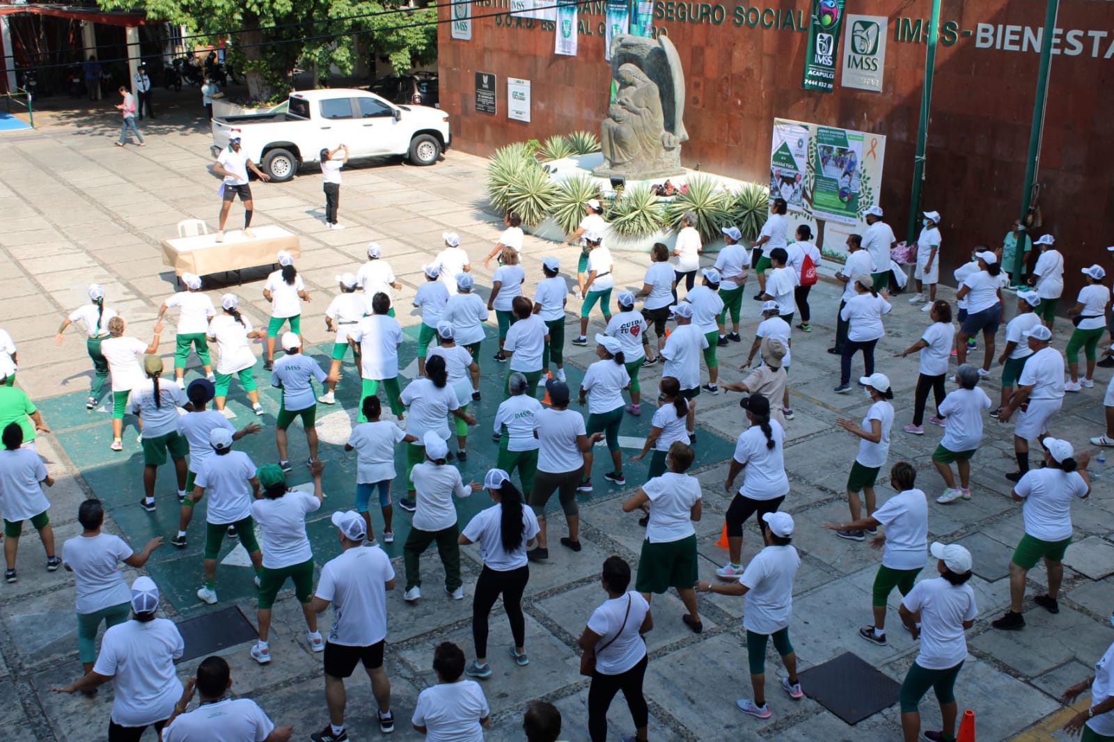 Personal del Instituto y usuarios de los cinco Centros de Seguridad Social (CSS) en Guerrero y del Centro de Extensión de Conocimientos de Esquema Modificado (CECEM) Acapulco se unieron a este desafío con una activación física, con el propósito de promover el deporte como un elemento fundamental para un estilo de vida saludable.