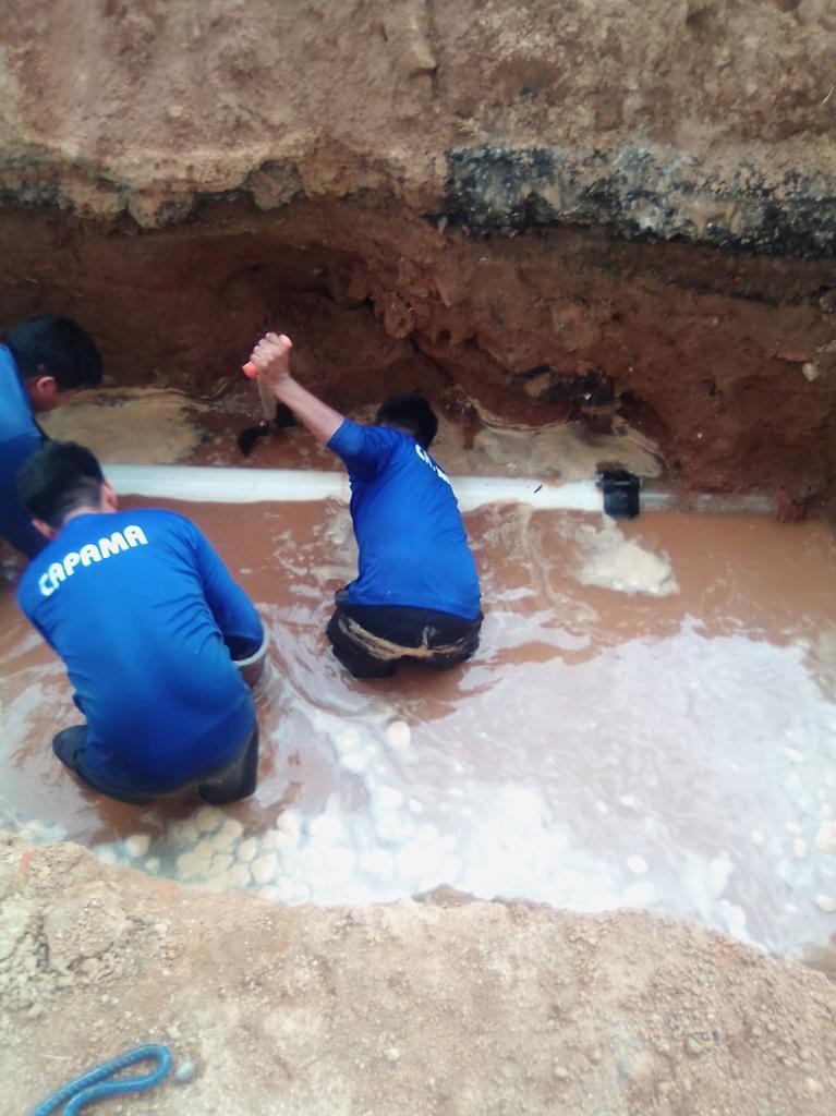 El personal de la CAPAMA intervino en una fuga de agua potable ubicada en la calle Baja California y Niños Héroes de la colonia Progreso, así como en otra fuga en una toma de 2 pulgadas y media en la calle Felipe Ángeles de la colonia Francisco Villa.