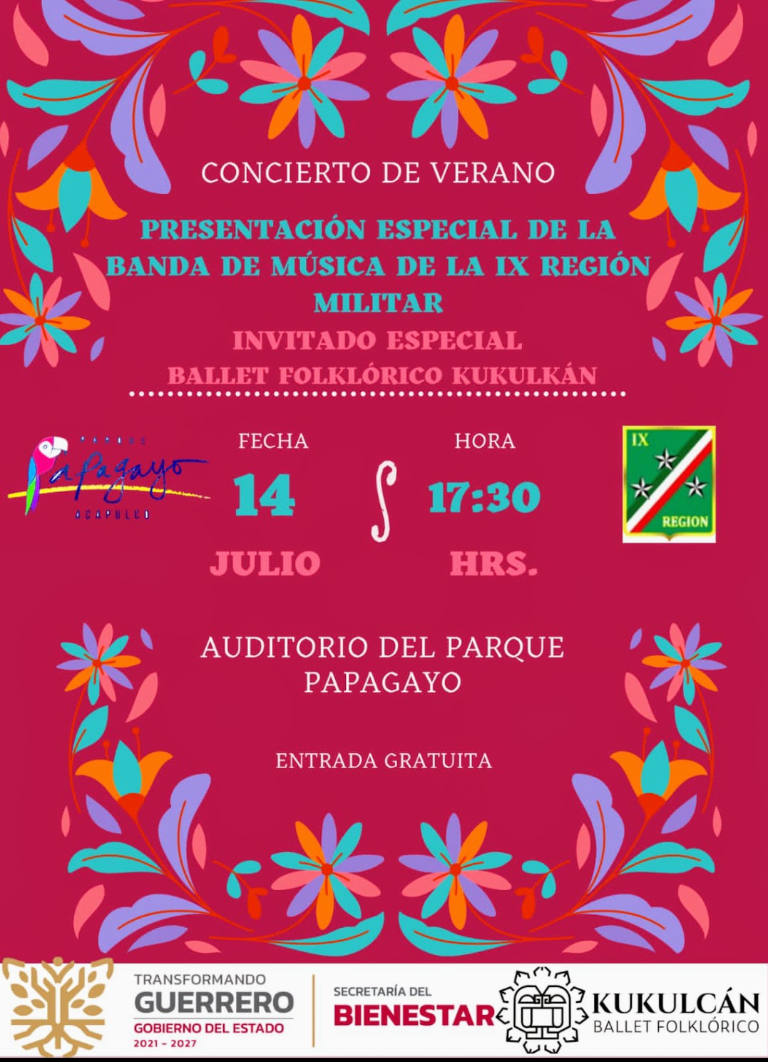 La política de la gobernadora Evelyn Salgado Pineda es construir espacios recreativos y culturales para las familias, mostrando una estrecha coordinación con diferentes instituciones y dependencias para beneficiar a todos y todos los guerrerenses, expresó el director del Parque Papagayo, Abel Luvio Villanueva al anunciar los “Conciertos de verano” que llevarán a cabo los integrantes de la banda musical de la IX Región Militar.