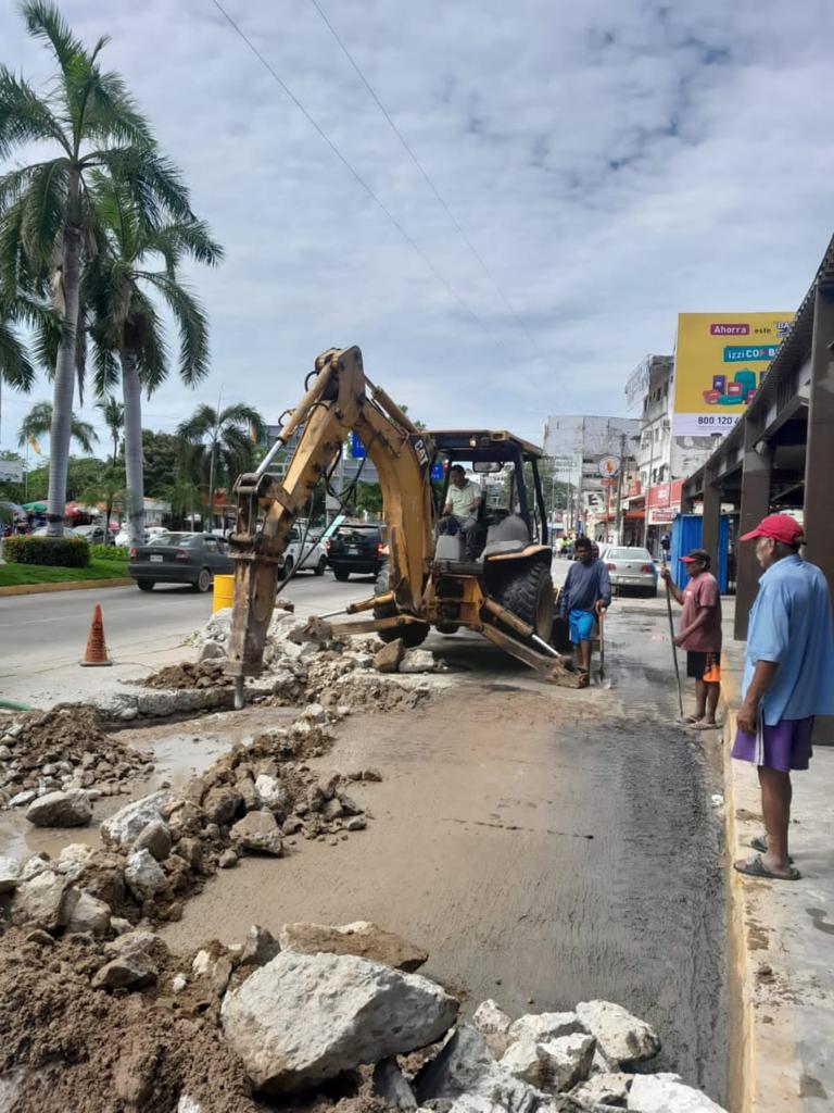 El encargado de despacho de la dirección general de la CAPAMA, Hugo Lozano Hernández, explicó que trabajadores del organismo repararon con ayuda de una retroexcavadora, una fuga de agua potable en una línea de conducción de 8 pulgadas de PVC sobre la avenida Costera Miguel Alemán a la altura del Zócalo, en el carril con sentido a Caleta. Por los trabajos realizados, la zona se encuentra acordonada y con señalización para alertar a los automovilistas; este lunes será aplicado el concreto.