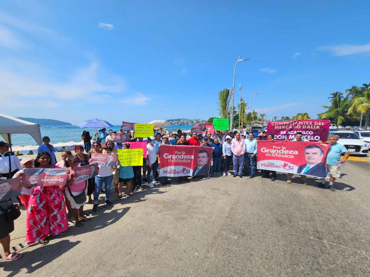 Mega concentración en Acapulco para apoyar a Marcelo Ebrard en la que participan transportistas, comerciantes, prestadores de servicios turísticos y ciudadanos en general, en el Asta Bandera.