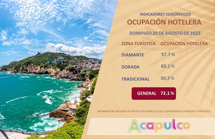 El gobierno encabezado por la presidenta municipal, Abelina López Rodríguez, a través de la Secretaría de Turismo Acapulco, informó que el puerto registró este domingo una ocupación hotelera general del 72.1 por ciento.