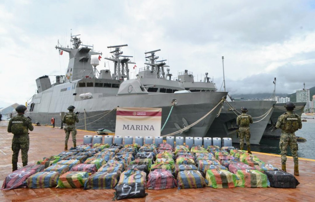 La Secretaría de Marina a través de la Armada de México, informó que, en días pasados, personal de esta Institución, aseguró, en dos acciones diferentes, tres embarcaciones con aproximadamente 4,400 (cuatro mil cuatrocientos) kilogramos de presunta cocaína, aproximadamente 5,300 (cinco mil trescientos) litros de combustible y logró la detención de 11 presuntos trasgresores de la ley, frente a costas del Pacífico mexicano.