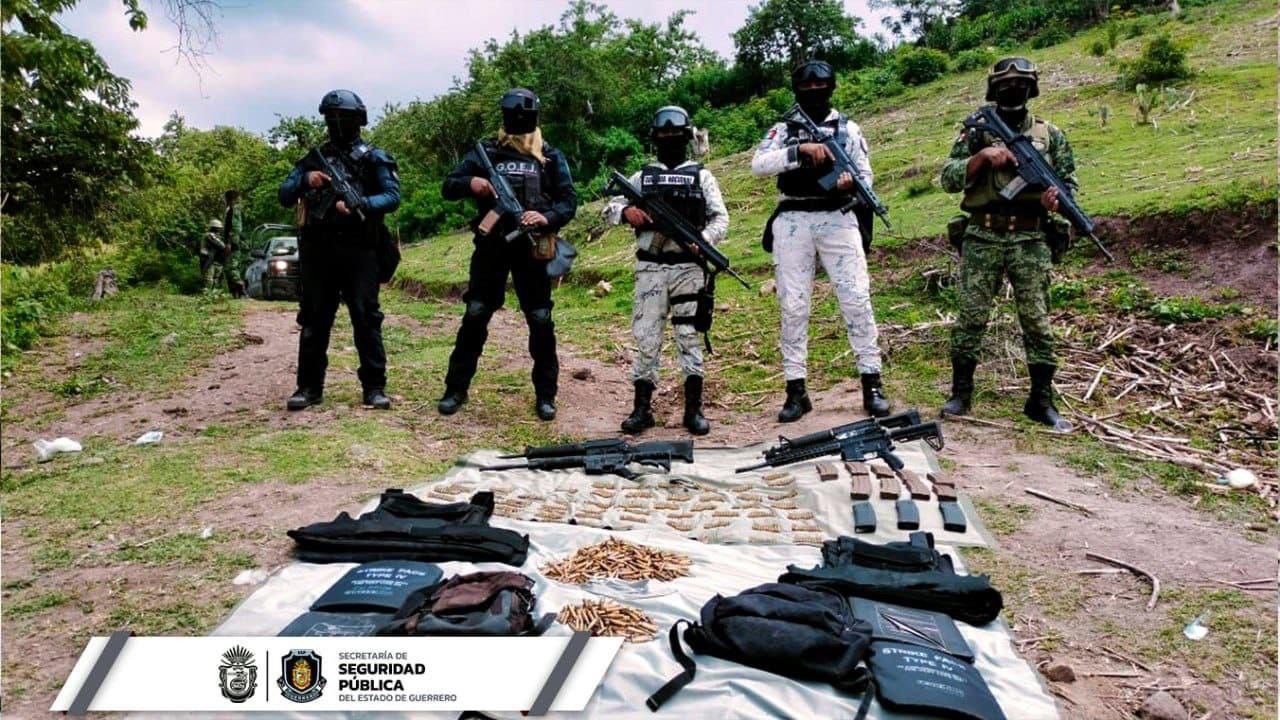 Como resultado de las acciones conjuntas que mantienen las autoridades de seguridad en la localidad de Chichihualco, municipio de Leonardo Bravo, personal de la Policía Estatal, de la Secretaría de la Defensa Nacional y Guardia Nacional destruyeron un campamento clandestino y aseguraron fusiles, cargadores, cartuchos y chalecos tácticos.