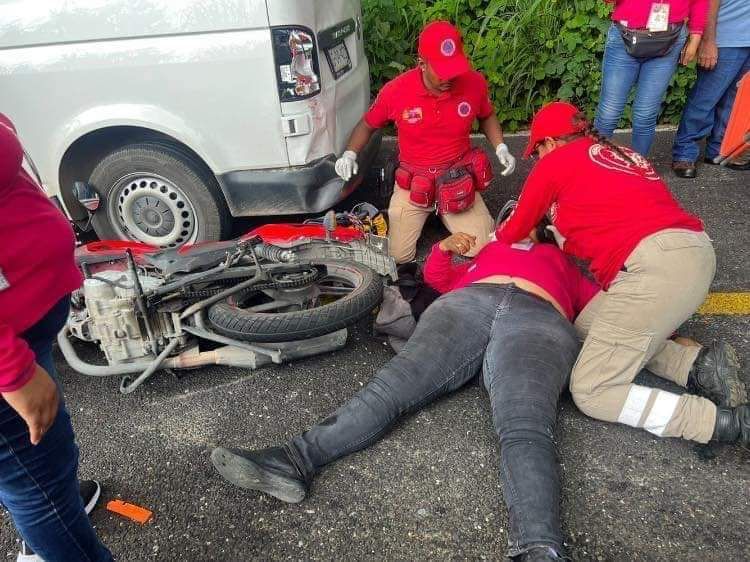 Una mujer que conducía una motoneta se estrelló contra un auto en el Crucero de Las Piñas en la cabecera de Juan R. Escudero, Tierra Colorada.